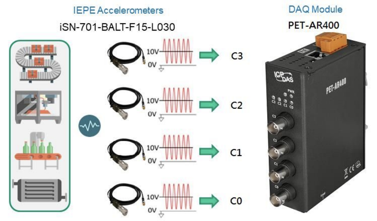 (更多詳情)簡介PET-AR400 是一款具以太網絡的高精度動態信號數據采集模塊,用于測量電壓(IEPE) 傳感器,如加速規等,可同步采集4 通道模擬輸入信號