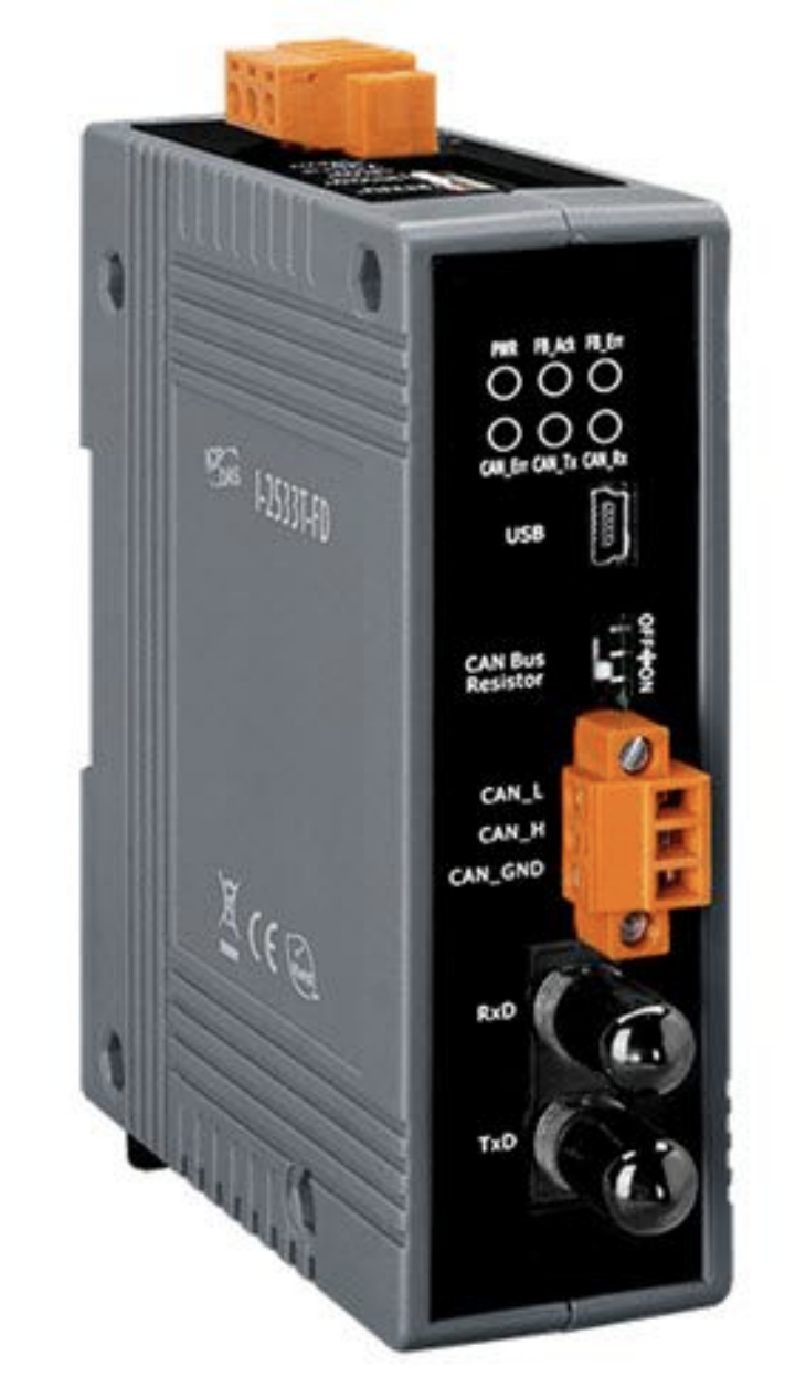 (更多詳情)I-2533T-FD 模塊為CAN CAN FD (CAN with Flexible Data-Rate) 通訊接口與單模光纖通訊接口的網橋,能透過多模光纖鏈接兩個CAN CAN