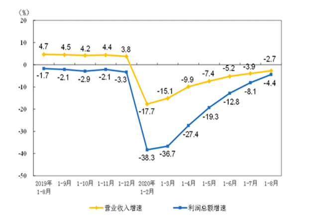 (更多詳情)國家統計局9月27日公布數據顯示,8月份,全國規模以上工業企業利潤同比增長19 1%,延續穩定增長態勢。從1-8月看,累計利潤同比下降4 4%,降