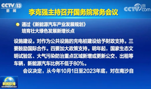 (更多詳情)10月9日,國務院總理李克強主持召開國務院常務會議,通過了《新能源汽車產業發展規劃》(以下簡稱“規劃”),目標是培育壯大綠色發展新增
