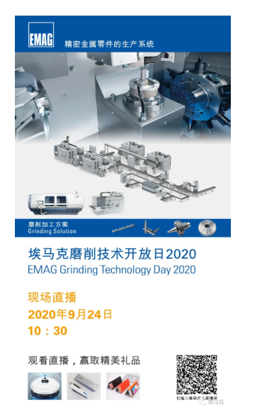 埃馬克磨削技術開放日將于明天(9月24日)10:30準時開始,為您介紹磨削領域的先進工藝和高效解決方案,線上同步直播!更有驚喜等著您!