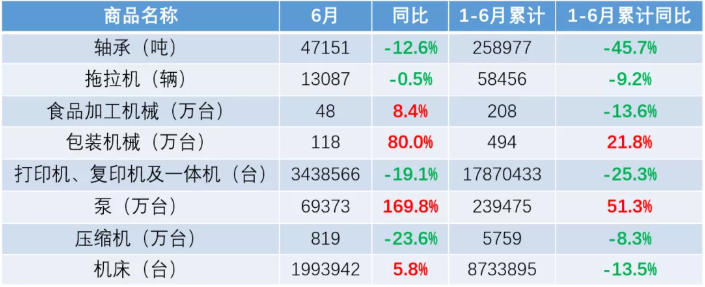 (更多詳情)海關(guān)數(shù)據(jù)顯示,2020年6月我國(guó)機(jī)床出口1993942臺(tái),同比增加5 8%;1-6月累計(jì)出口8733895臺(tái),同比下降13 5%。2020年6月主要機(jī)械產(chǎn)品出口情況20