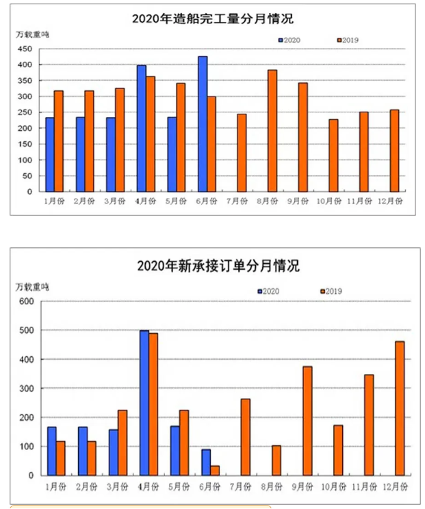 (更多詳情)2020年上半年全國(guó)造船完工量降幅收窄 新承接船舶訂單增長(zhǎng) 國(guó)際市場(chǎng)份額繼續(xù)保持領(lǐng)先1-6月,全國(guó)造船完工量1758萬(wàn)載重噸,同比下降10 6%,