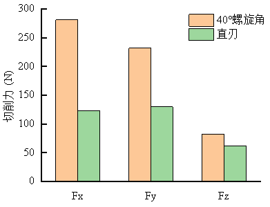 圖4:帶螺旋角的常規銑刀與直刃銑刀的切削力大小對比