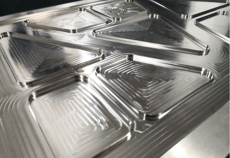 該款翼面蒙皮結構復雜,如圖1所示,主體結構為1mm厚的腹板,尺寸接近0.8 X 0.3m,跨度很大;腹板上還帶有多邊形型腔結構,型腔側壁的壁厚僅為0.5mm,高度為3.5mm,屬于典型的弱剛度結構。蒙皮零件的毛坯為5mm厚鈦合金板材,材料去除率高達 92.6%。加之零件整體均由TA15鈦合金制成,其材料的室溫強度、高溫強度以及焊接性能均高于TC4 鈦合金等其他材料,更使得零件的加工難度成倍上升。