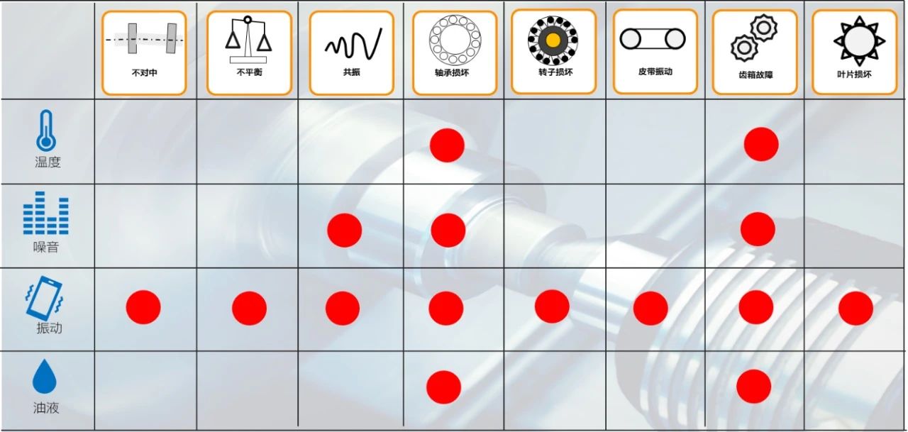 表 1 - 故障診斷常用的檢測方法
